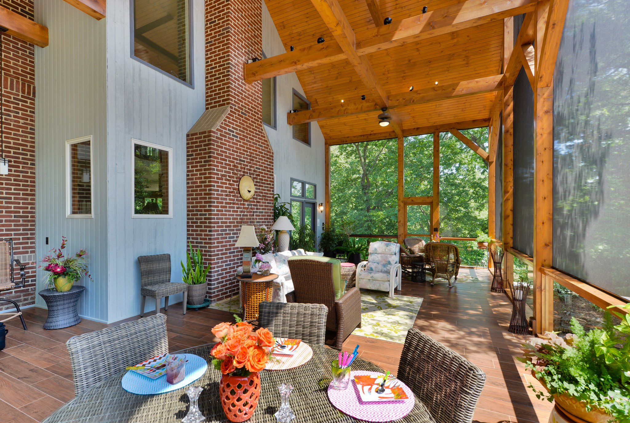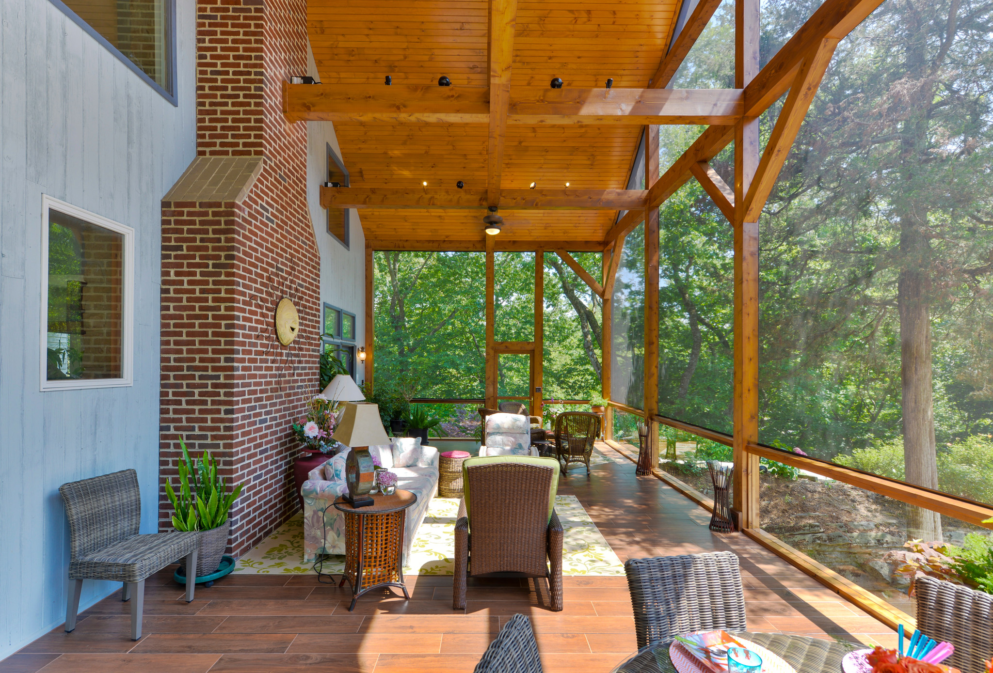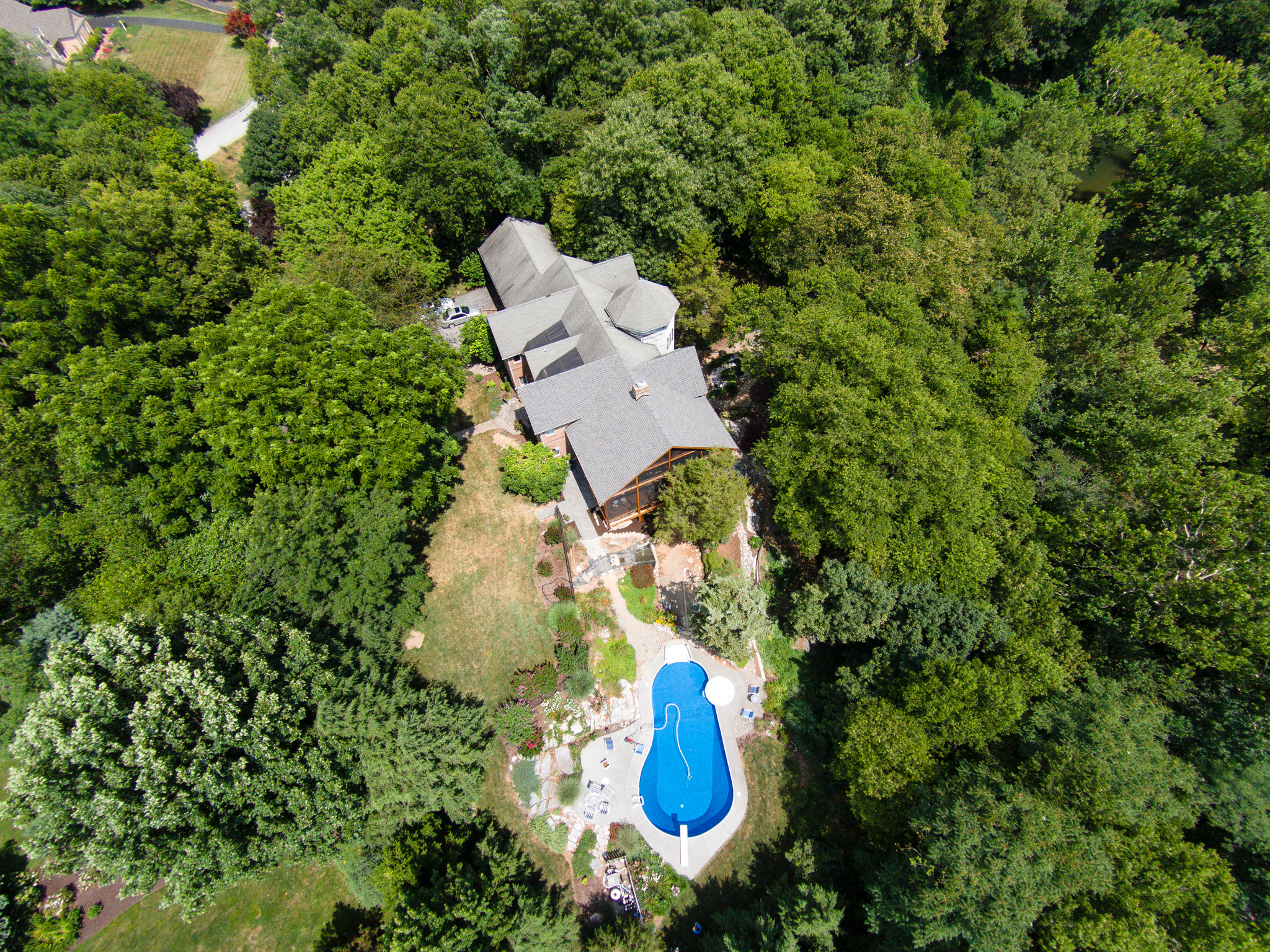 When you have a screened-in porch 35 feet high, the only way to properly photograph it is with a remote control drone. Enjoy these stunning shots of a three story screened in porch deck nestled in the idyllic trees of Pennsylvania.