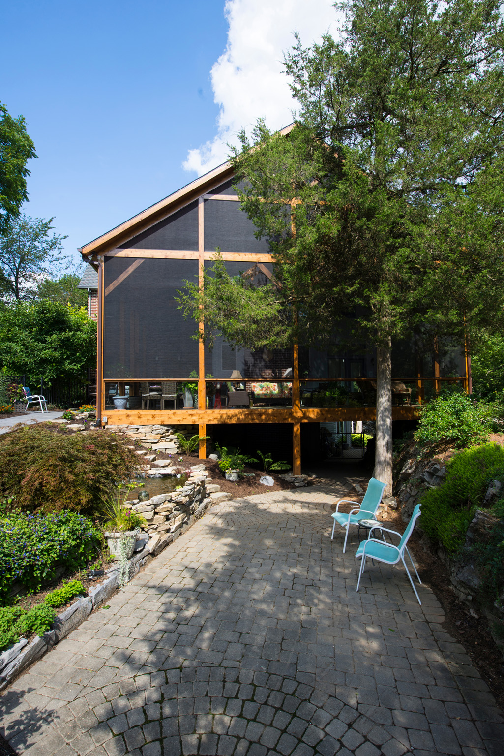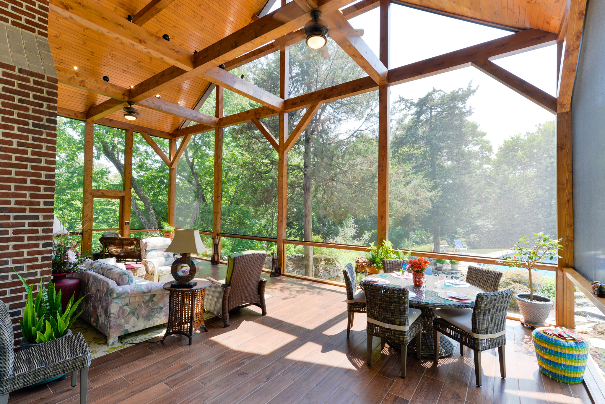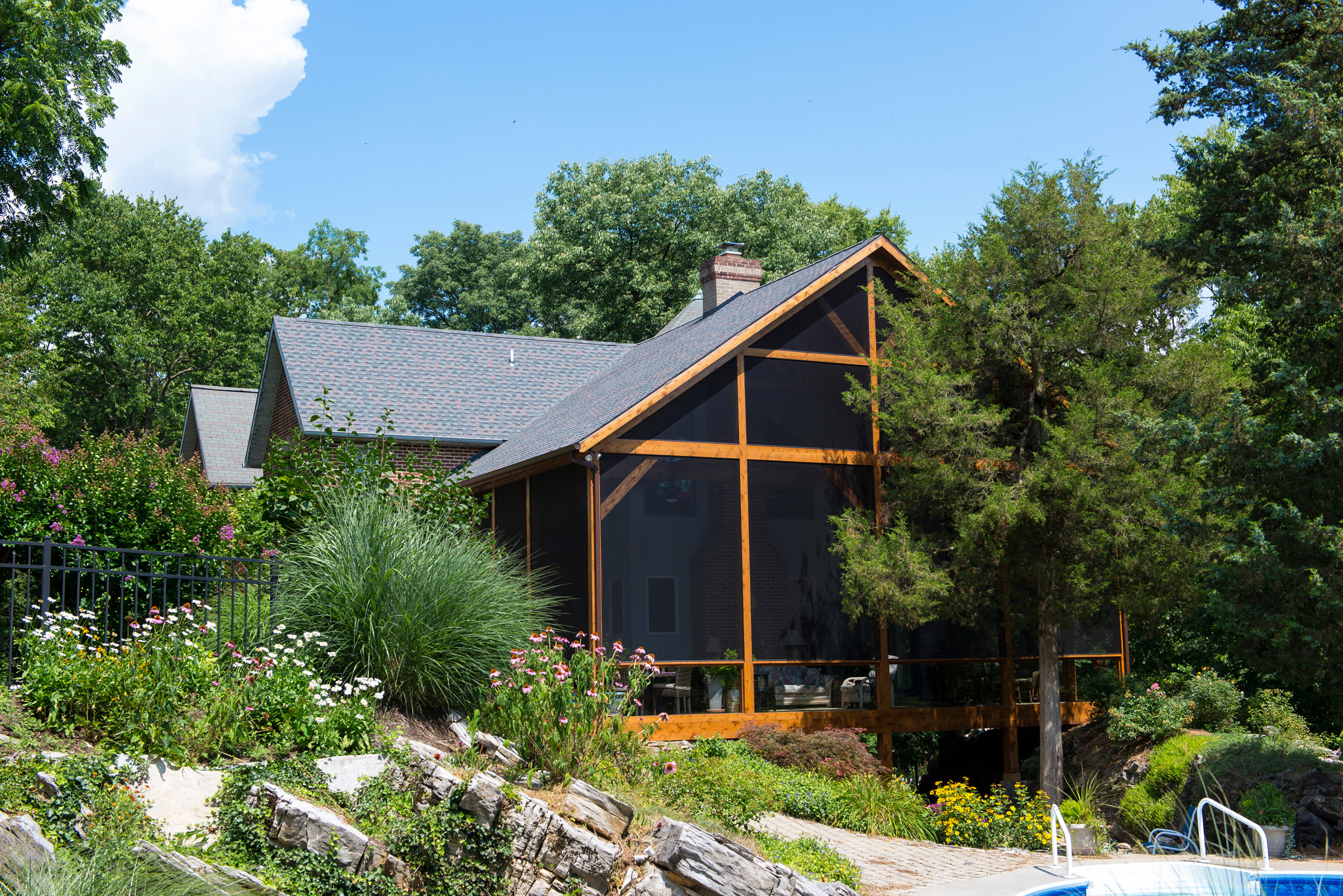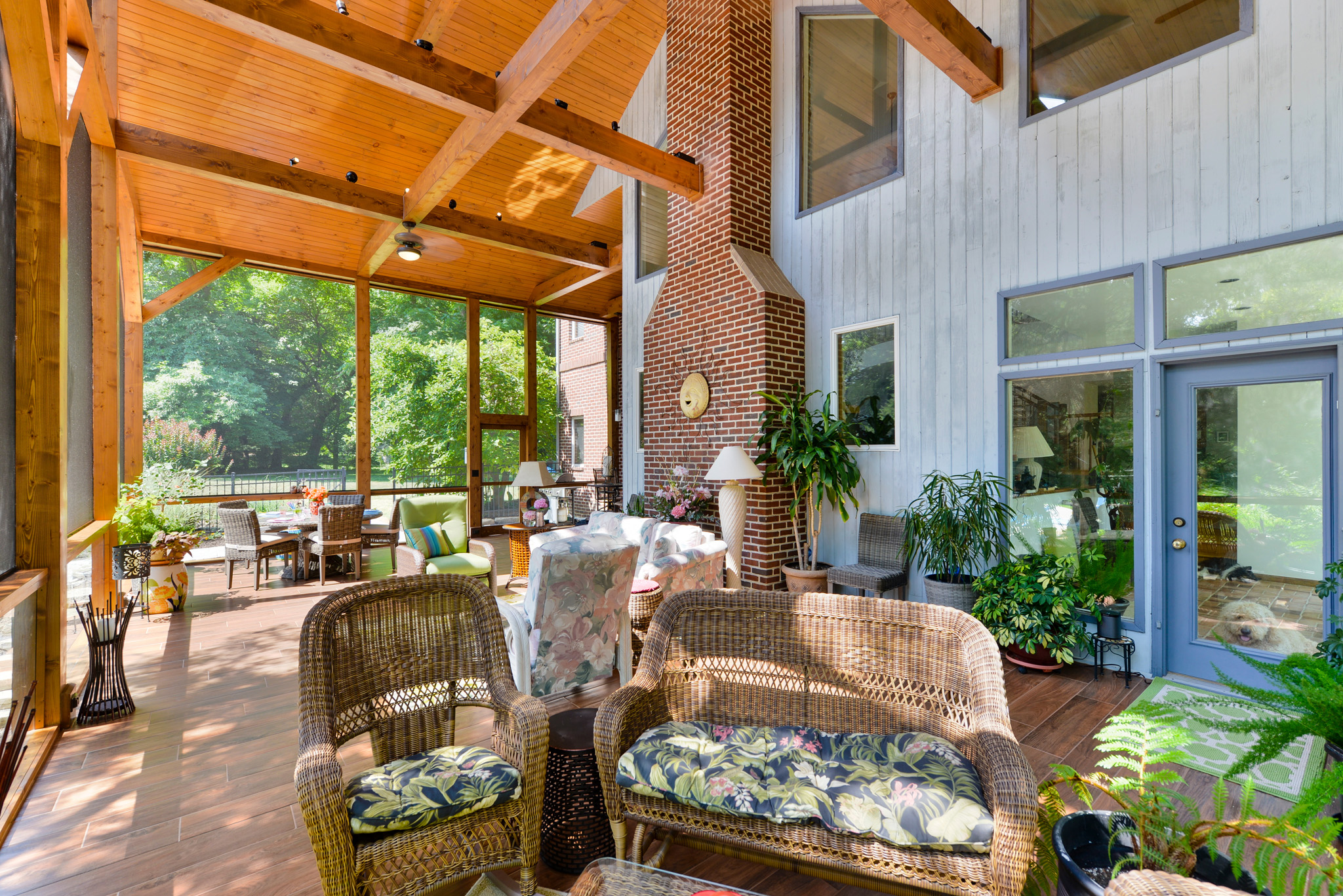 When you have a screened-in porch 35 feet high, the only way to properly photograph it is with a remote control drone. Enjoy these stunning shots of a three story screened in porch deck nestled in the idyllic trees of Pennsylvania.