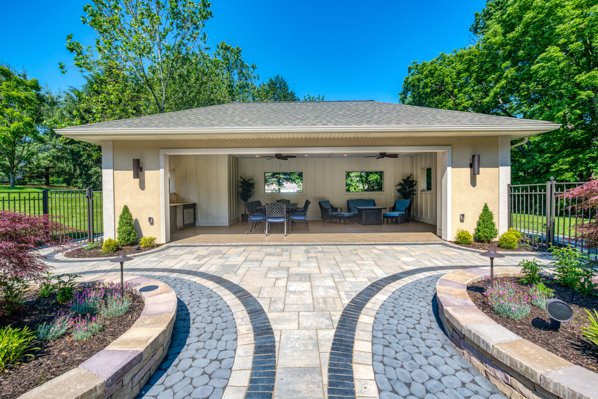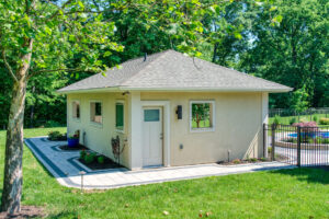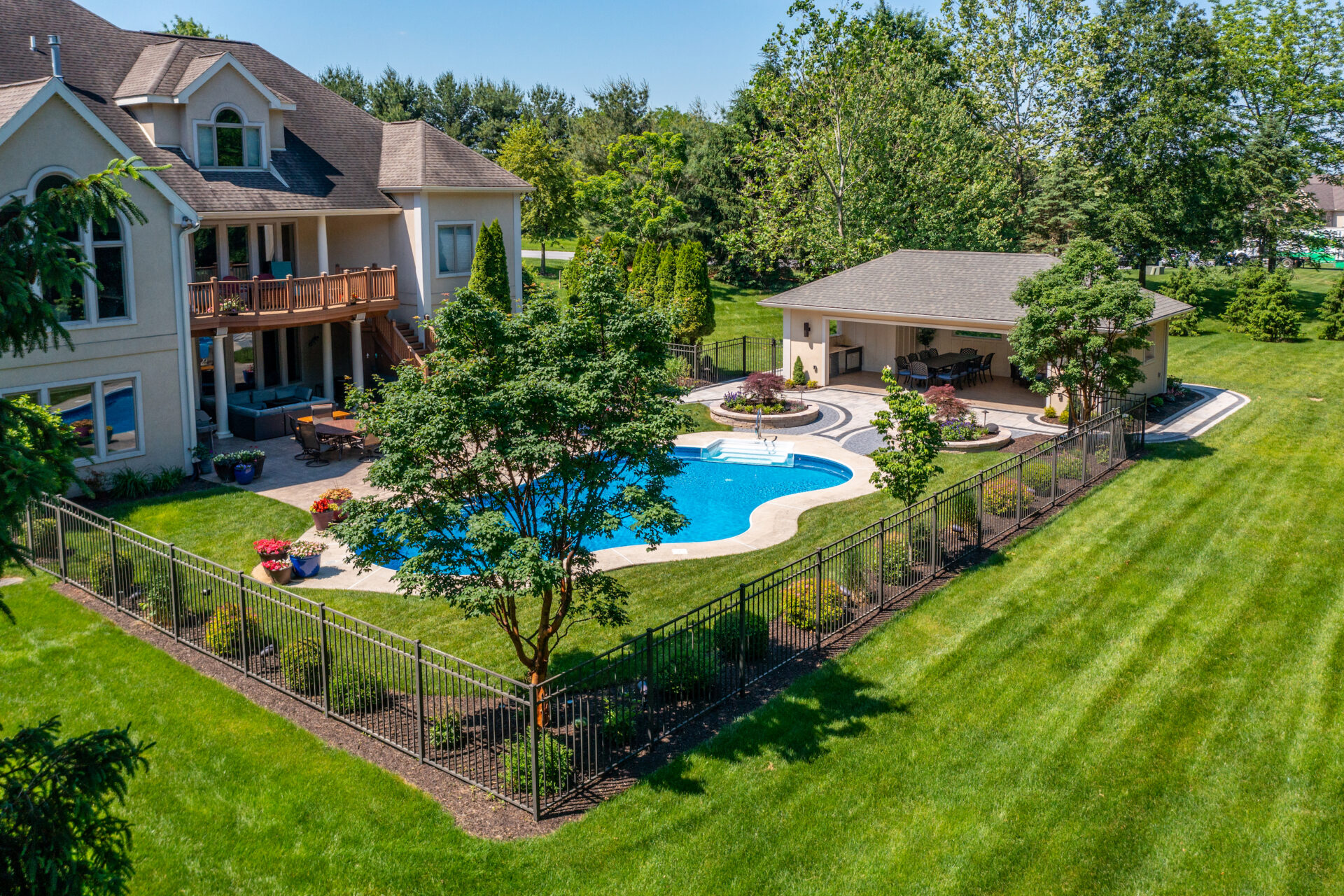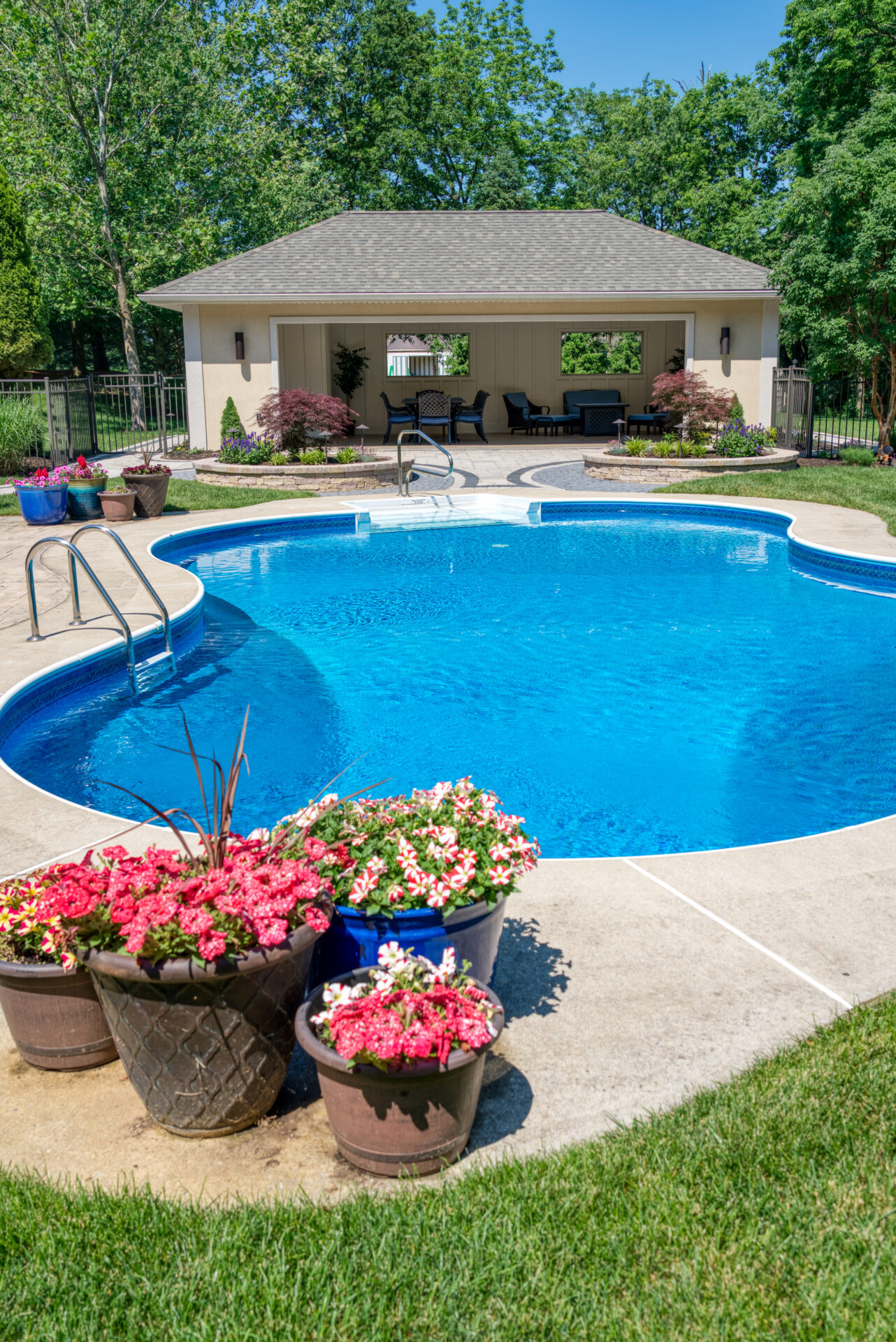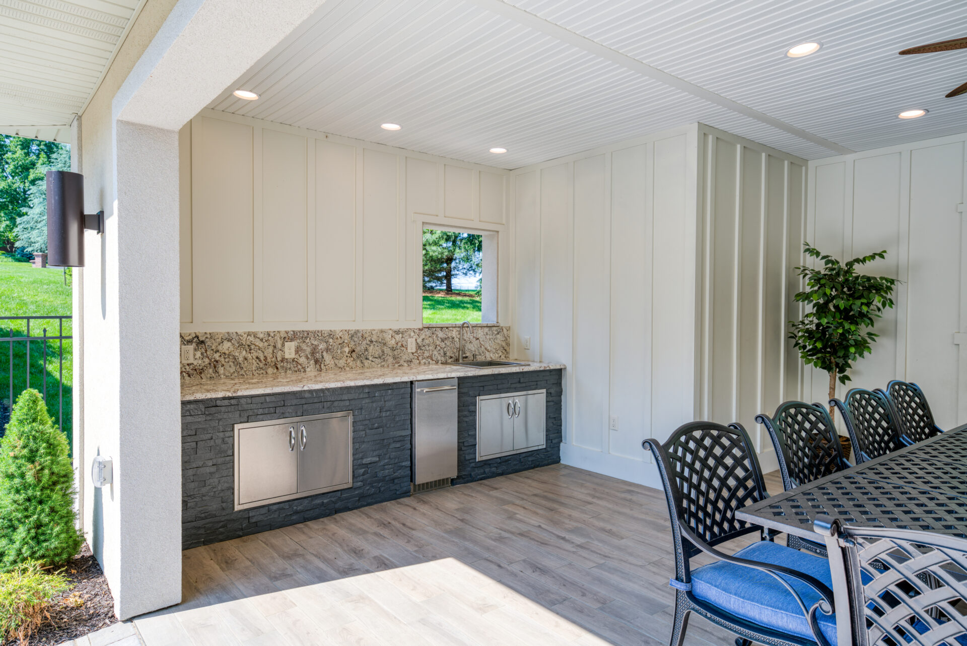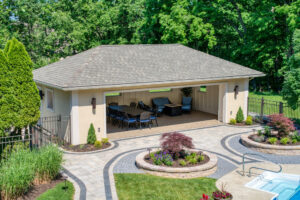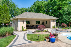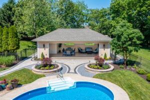 Check out this custom design and build poolhouse complete with bathroom, kitchen area and dining space. Absolutely paradise for relaxing and entertaining!