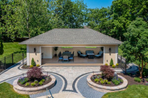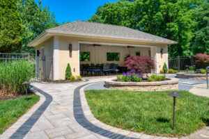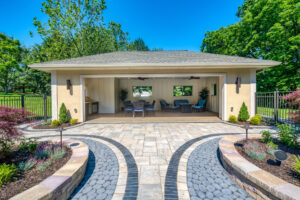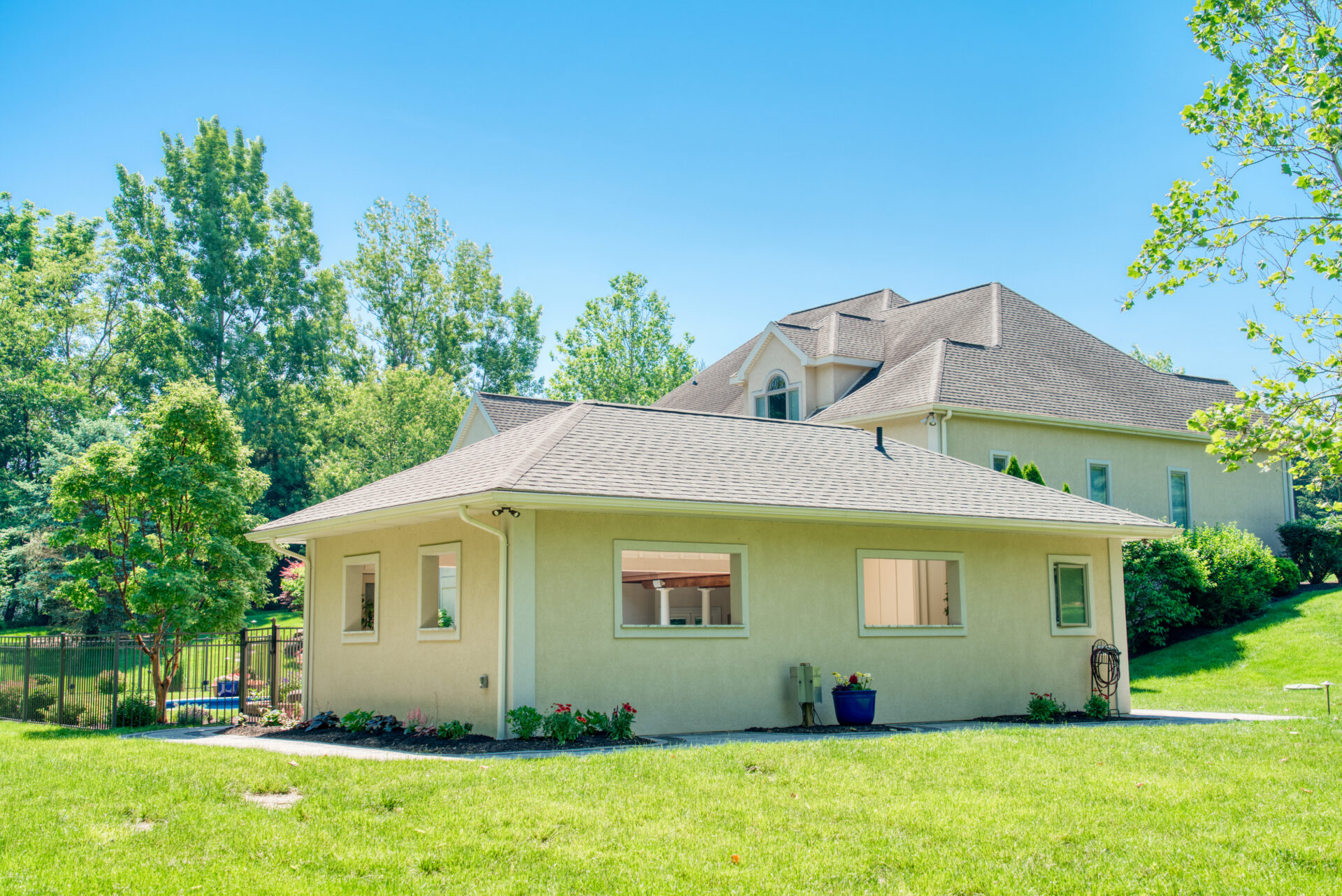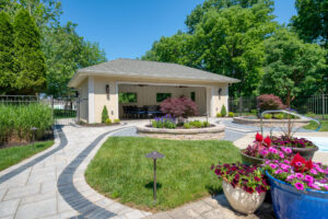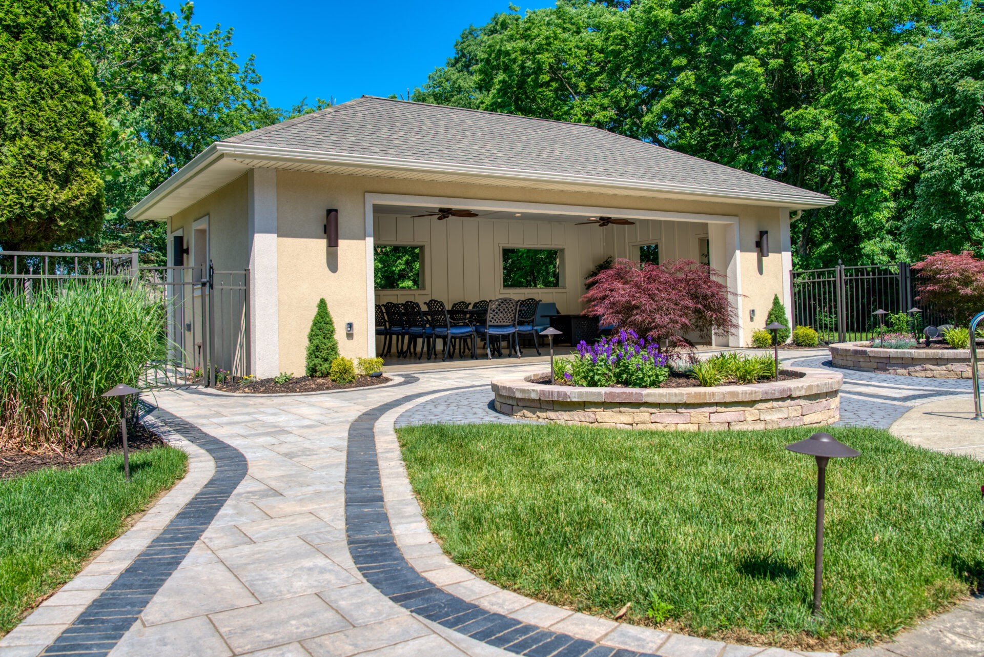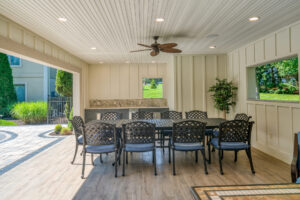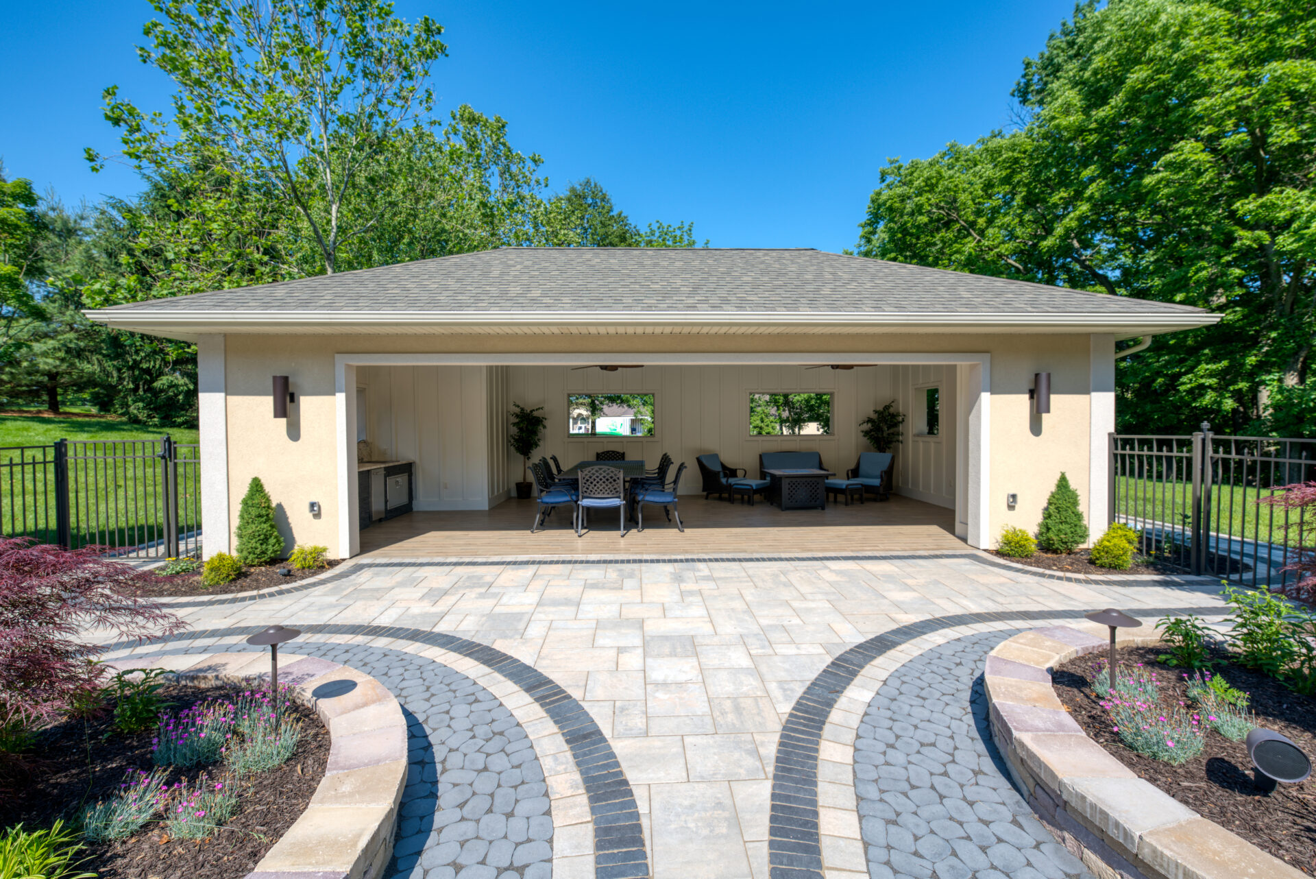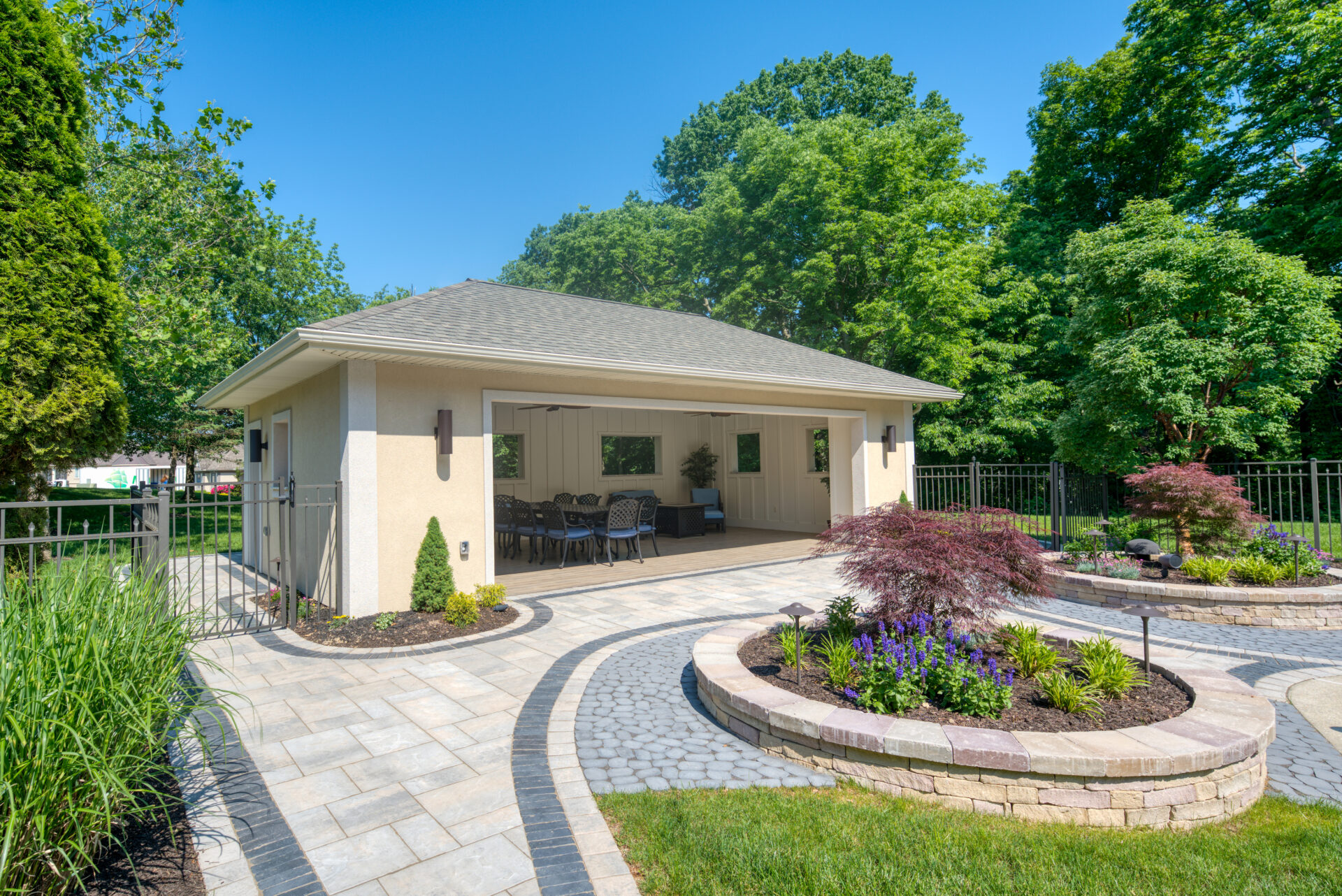 Check out this custom design and build poolhouse complete with bathroom, kitchen area and dining space. Absolutely paradise for relaxing and entertaining!
