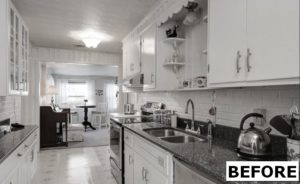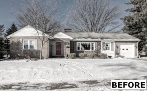 For this whole home remodel, Excel added a peak to the exterior; put on a new siding and a new roof; added new soffits, down spouts, and a new front door; raised the outside front step; replaced the large picture window; handled the piping for the conversion to gas heat and the paving for the sidewalks and driveway… and that was just on the outside! Inside the home, Excel created a doorway so the couple can close off the sleeping rooms from the main living space, and remodeled the bathrooms, kitchen, and sunroom, as well as creating a laundry room by extending into the narrow, one-car garage – the remainder of which now serves as storage shed space.